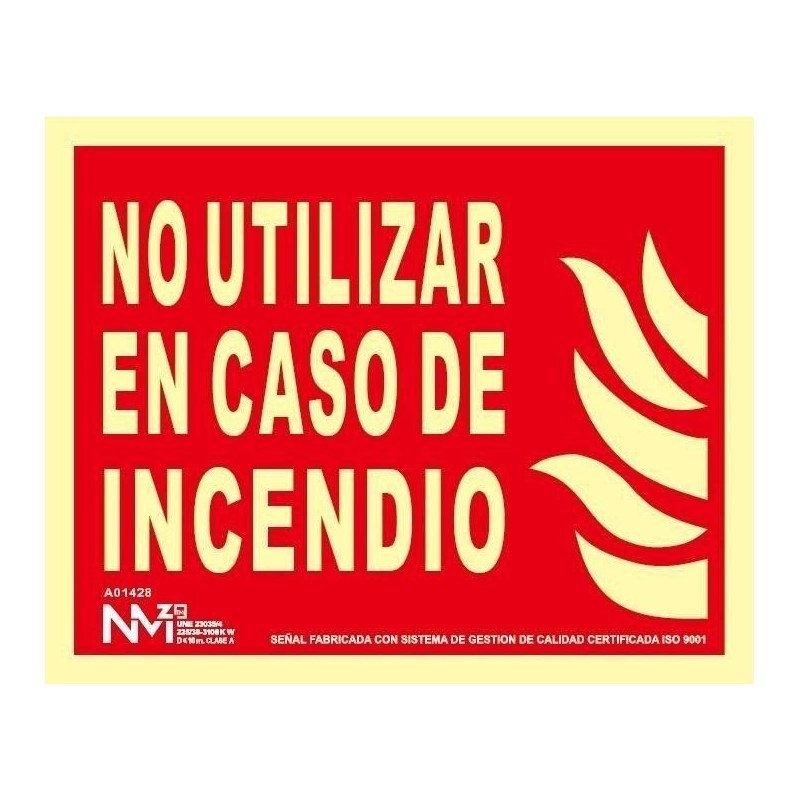 Señal Clase A Texto No Utilizar en Caso de Incendio