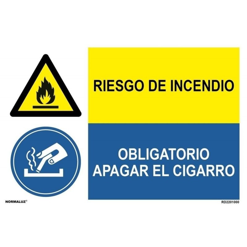 96 686 0132Señal Combinada Incendio Obligatorio Apagar el Cigarro