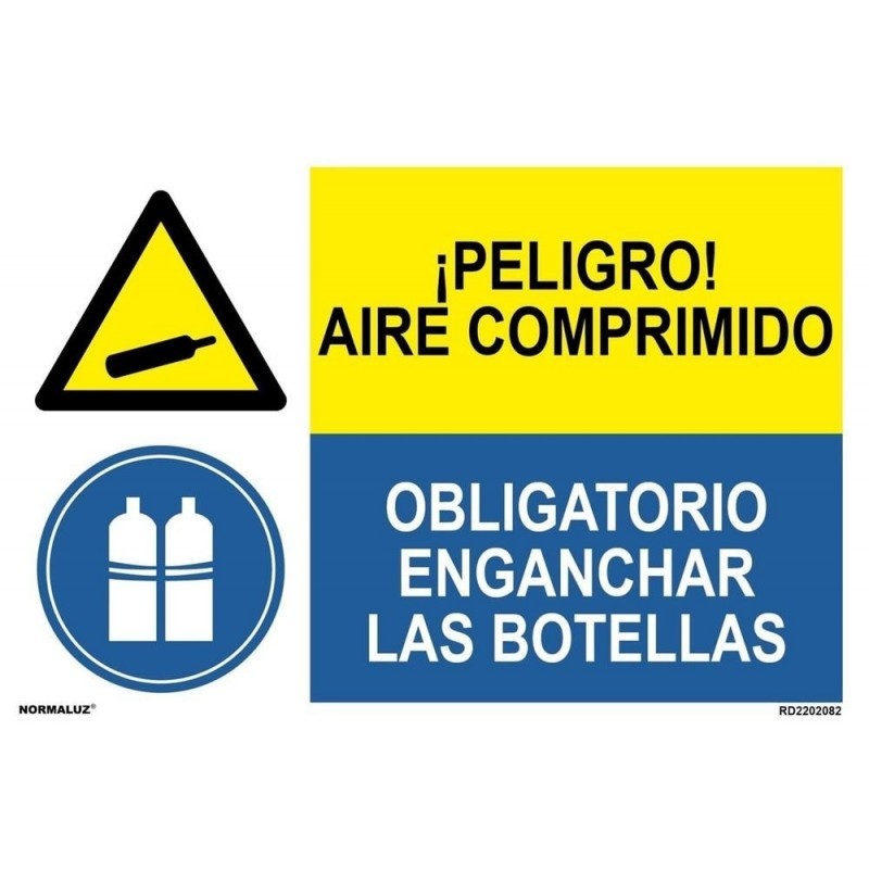 96 686 0132Señal Combinada Aire Comprimido Obligatorio Enganchar Botellas