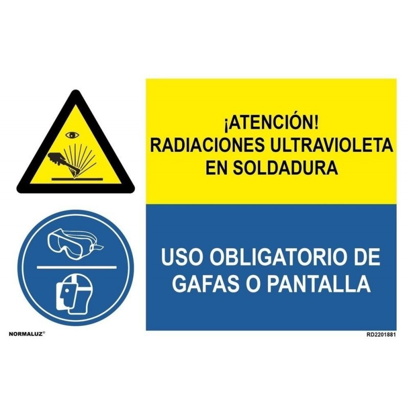Señal Combinada Radiación Ultravioleta Obligatorio Gafas/Pantalla Protectora